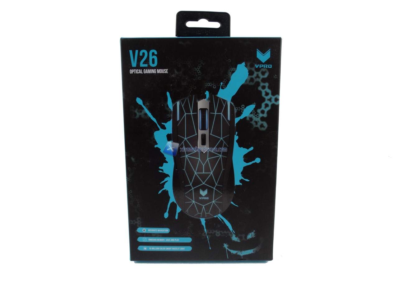 Il mouse sarà ospitato nella classica confezione di cartone sulla quale troveremo tutte le diverse immagini e caratteristiche tecniche. Lo schema di colore è sempre in riferimento al brand VPRO Gaming.