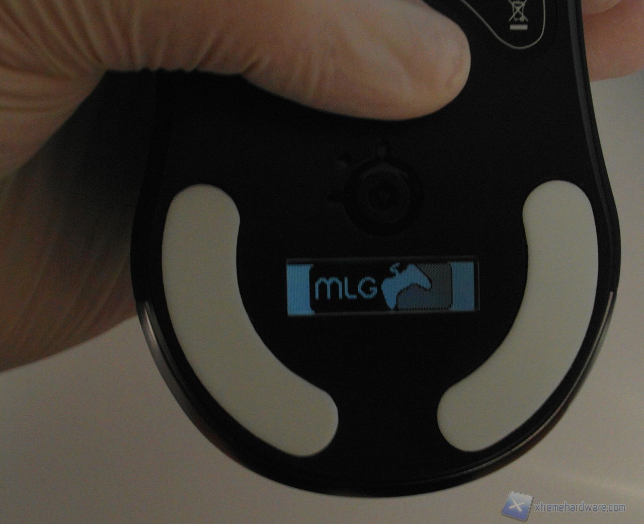 Anche la parte inferiore è rimasta invariata rispetto al passato ed è caratterizzata dal display che permette la configurazione del mouse e la personalizzazione dello stesso. A differenza del precedente modello, tuttavia, troviamo al centro il nuovo Avago 9800 mentre i mouse feet laterali, seppur di colore diverso, sono dello stesso materiale di quelli precedenti.