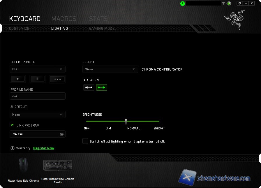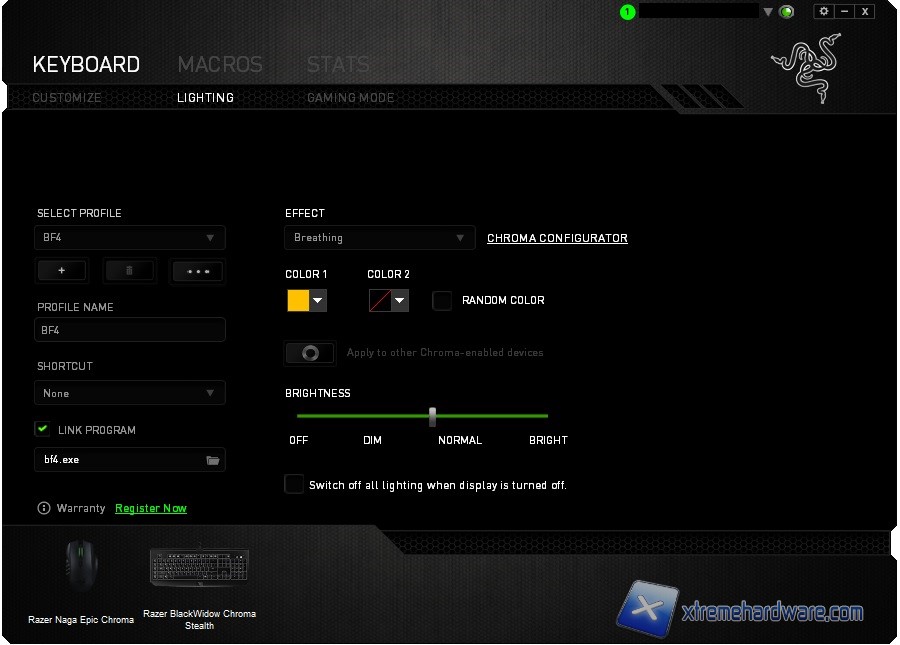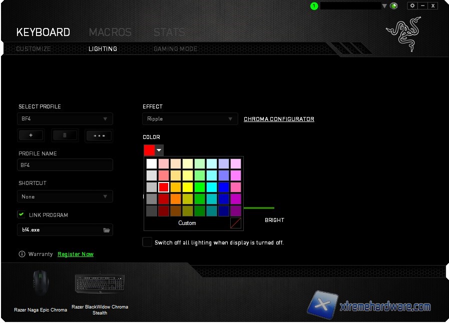 - Spectrum Cycling (Spettro Circolare) In presenza di altre periferiche Razer Chroma e selezionando questa opzione avremo modo di far “combaciare” il singolo colore scelto per ogni periferica Chroma compatibile.
