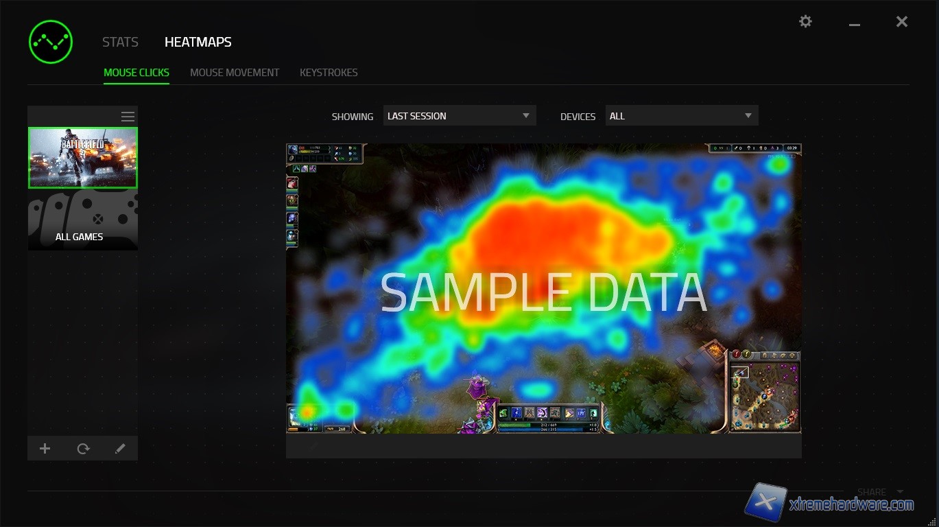 Ultimo Menù del Razer Synapse 2.0 è “Stats” che permette abilitando tale funzione di tenere traccia di quali tasti premiamo più spesso rispetto ad altri. Questo sistema è utile anche perché permette di tenere in conteggio dei tasti premuti per ogni singolo gioco. Nel nostro caso non lo abbiamo mai abilitato visto che non siamo “interessati” a sapere quali tasti premiamo più spesso in gioco, ma potrebbero esserci dei giocatori che sono l’esatto opposto. Il software mette a disposizione varie tap a secondo della periferica collegata e quindi ogni periferica ha un contatore indipendente dall’altro. Inoltre dalle immagini a seguire vediamo come sono state aggiunte delle voci per la tastiera e per il mouse che permettono di vedere sia la quantità di click in una data area, per esempio in un MMO, oppure i movimenti del mouse compiuti in un FPS o le pressioni sulla tastiera in combinazione a quelle del mouse. Quindi quasi un “personal trainer” che tiene traccia dei nostri progressi.