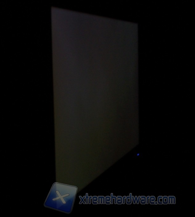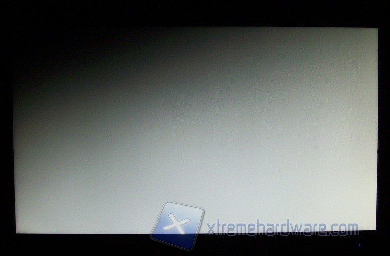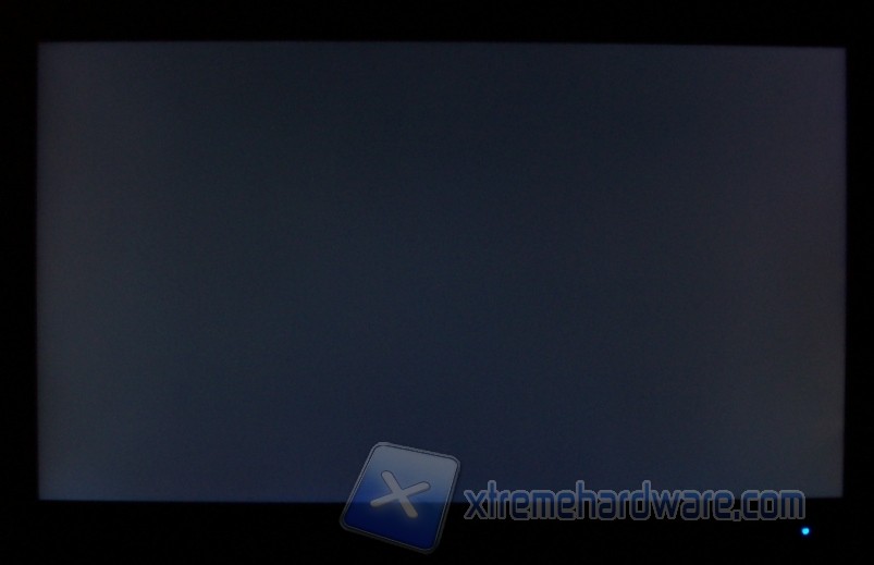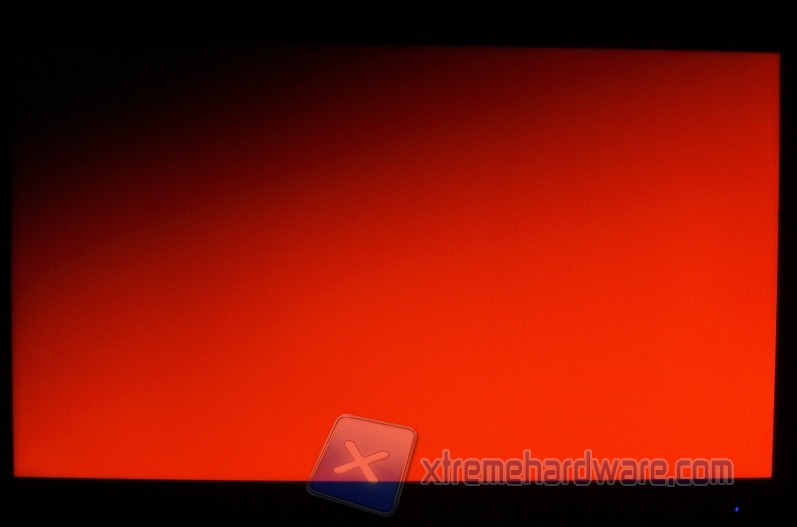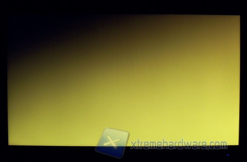 Abbiamo rilevato, al buio, l’uniformità della retroilluminazione a LED dell’AOC. Nella prima foto è rappresentata la condizione simile a quella riscontrabile a occhio nudo, mentre nella seconda abbiamo aumentato la sensibilità della fotocamera alla luminosità, al fine di rilevare con maggiore accuratezza eventuali problemi di backlight.