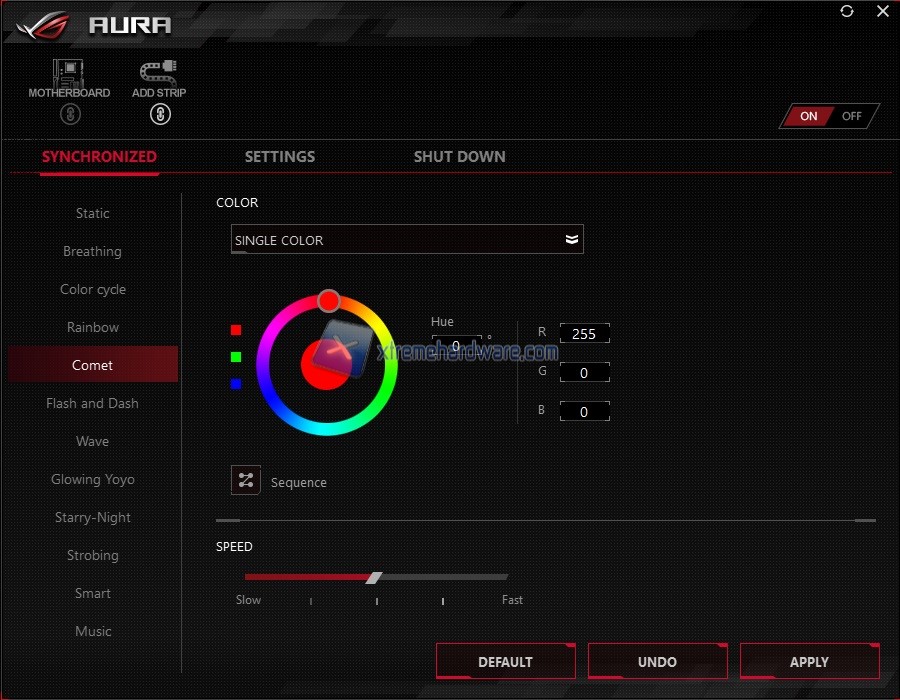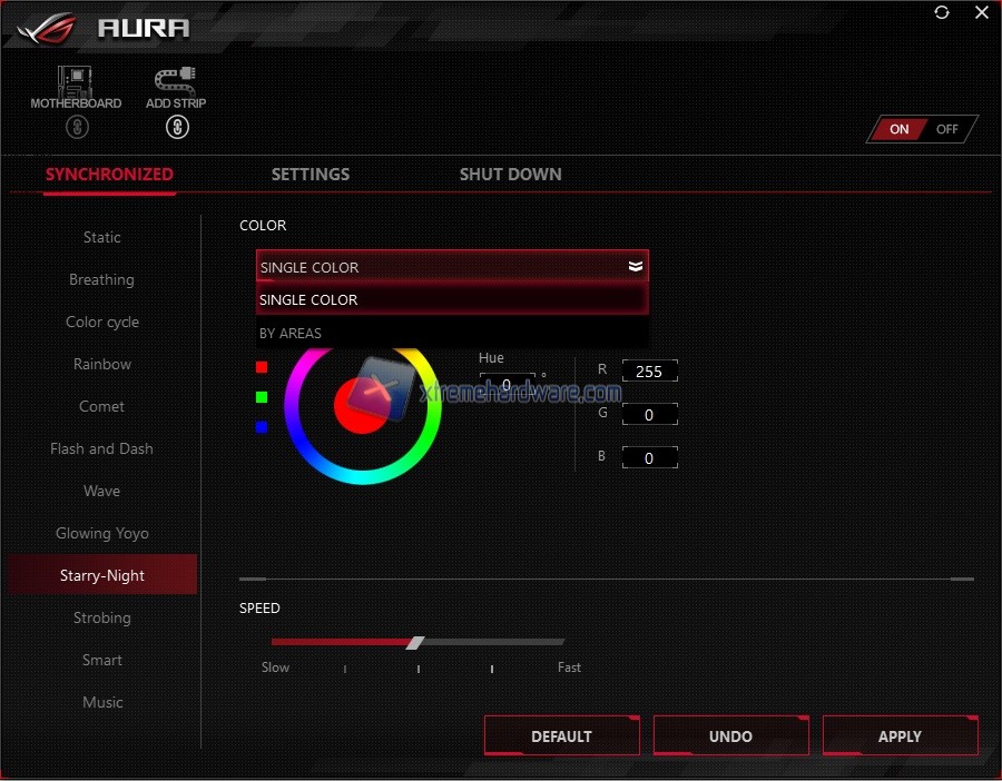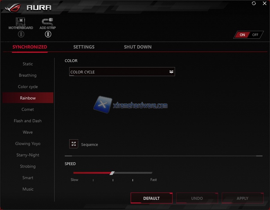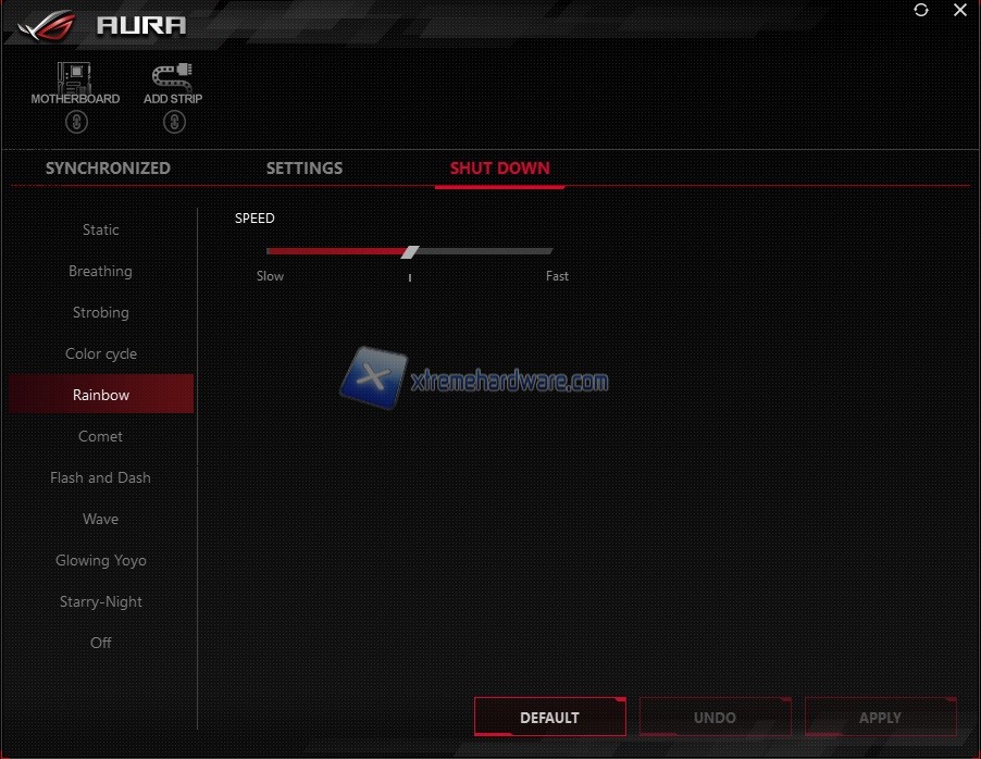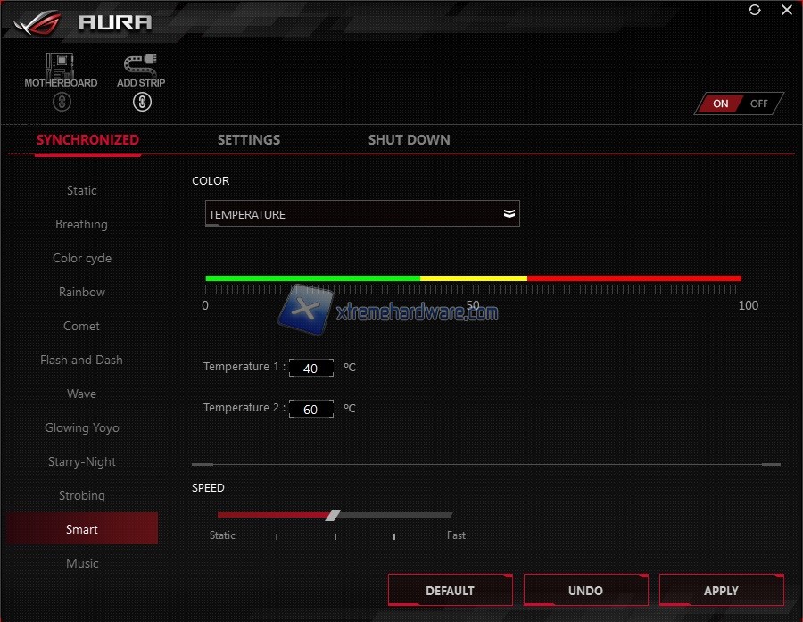 Con il primo Menù avremo accesso a diversi effetti quali ‘’Static’’, ‘’Breathing’’, ‘’Color Cycle’’, ‘’Strobing’’, ‘’CPU Temperature’’, ‘’Music’’ e molti altri ancora (aggiunti con le sempre più nuove release). Ognuno dei quali potrà essere personalizzato nella modalità e nei colori. Tale Menù inoltre sarà relativo ad un’illuminazione sincronizzata a eventuali strisce a LED collegate ad uno o due Header presenti sulla scheda madre.