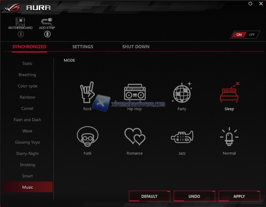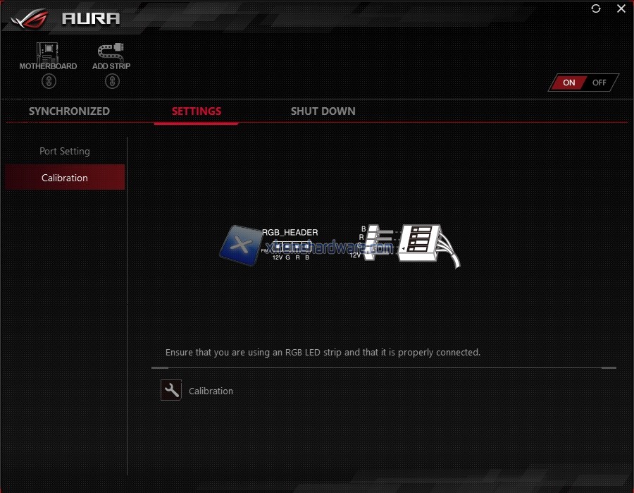 Avremo a disposizione questa volta tre ‘’Menù’’ principali che sono ‘’Synchronized’’, ''Settings'' e ‘’Power Off’’. Potremo anche disattivare l’illuminazione con un semplice click (a lato destro).