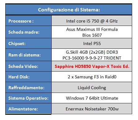 Tutti i test sono stati eseguiti con il sistema operativo Windows 7 Ultimate ita a 64 bit, senza particolari ottimizzazioni.